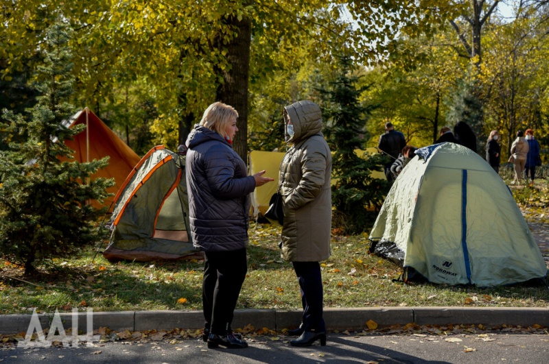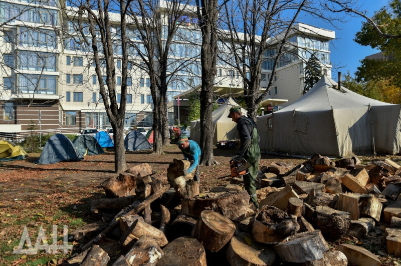 Перед зданием гостиницы на бульваре Пушкина разбит палаточный городок. Донецкое агентство новостей сообщает, что в лагере порядка 20 палаток с обогревом. Пикетчики обеспечены горячим питьем, собран запас продуктов, в акции участвуют около 300 человек.